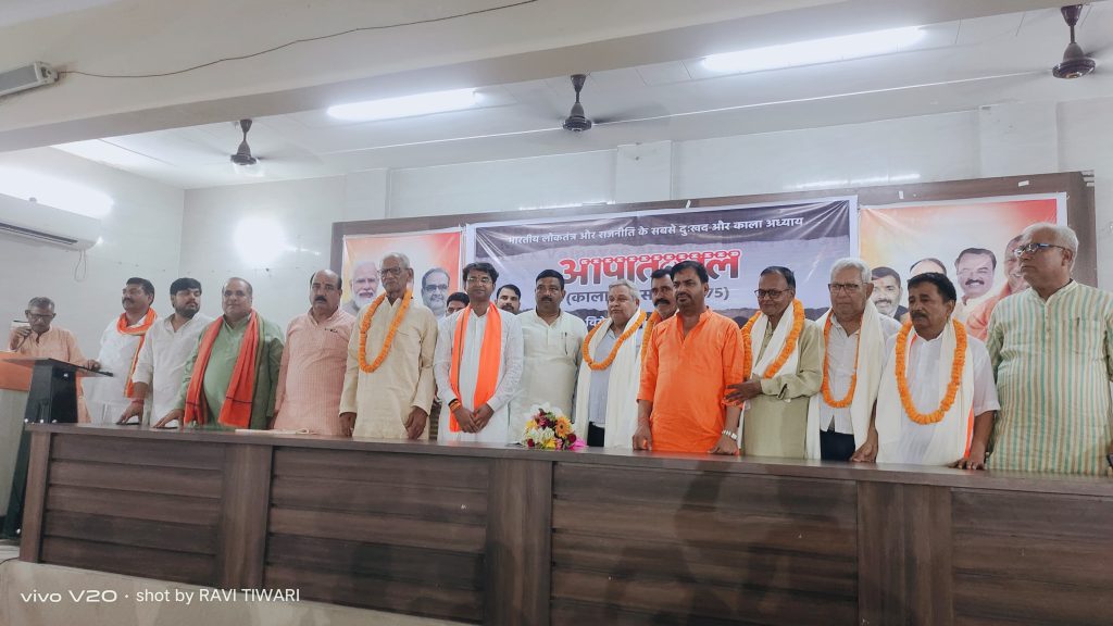 बस्ती। भारत के इतिहास में हर साल एक ऐसी तारीख आती है जिसके आने से हमें उन काले दिनों की याद आ ही जाती है। जिसे हम भूलने की कोशिश तो करते हैं लेकिन भूल नहीं पाते हैं। उन्हीं काली तारीखों में एक तारीख है 25 जून साल 1975 में देश के पीएम पद पर इंदिरा गांधी आसीन थी। पूर्व प्रधानमंत्री इंदिरा गांधी अपने कार्यकाल के दौरान कई ऐसे फैसले भी लिए जिसका उल्लेख इतिहास में काले अक्षरों में दर्ज है। 50 साल पहले यानि कि 25 जून 1975 की रात पूर्व प्रधानमंत्री इंदिरा गांधी के एक फैसले ने ना केवल इतिहास के पन्नों पर छाप छोड़ा बल्कि उसका खामिजा पूरे देश की जनता को उठाना पड़ा। मंगलवार को भाजपा कार्यालय पर आयोजित संगोष्ठी में लोकतन्त्र सेनानी दादा विजय सेन सिंह, बृजेश कुमार अग्रवाल, प्रेम नारायण आजाद, रशीद अहमद, राजेंद्र गौड़, व माता प्रसाद पाण्डेय को अंग वस्त्र भेट कर सम्मानित किया गया। जिलाध्यक्ष विवेकानन्द मिश्र ने कार्यक्रम की अध्यक्षता करते हुए मुख्य अतिथि क्षेत्रीय उपाध्यक्ष संजीव राय सहित सभी अतिथियों का अभिवादन किया।