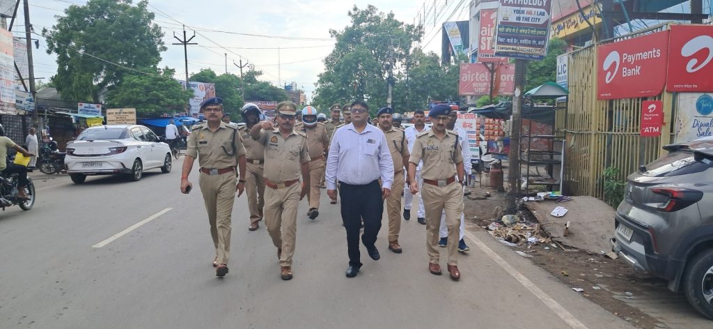 बस्ती जनपद जिलाधिकारी बस्ती व पुलिस अधीक्षक बस्ती गोपाल कृष्ण चौधरी द्वारा अपर पुलिस अधीक्षक बस्ती व क्षेत्राधिकारी सदर के साथ आगामी त्यौहार को सकुशल व शांतिपूर्ण सम्पन्न कराने के दृष्टिगत शहर क्षेत्रांतर्गत पुलिस बल के साथ रोडवेज से कोतवाली तक पैदल गश्त किया गया ।