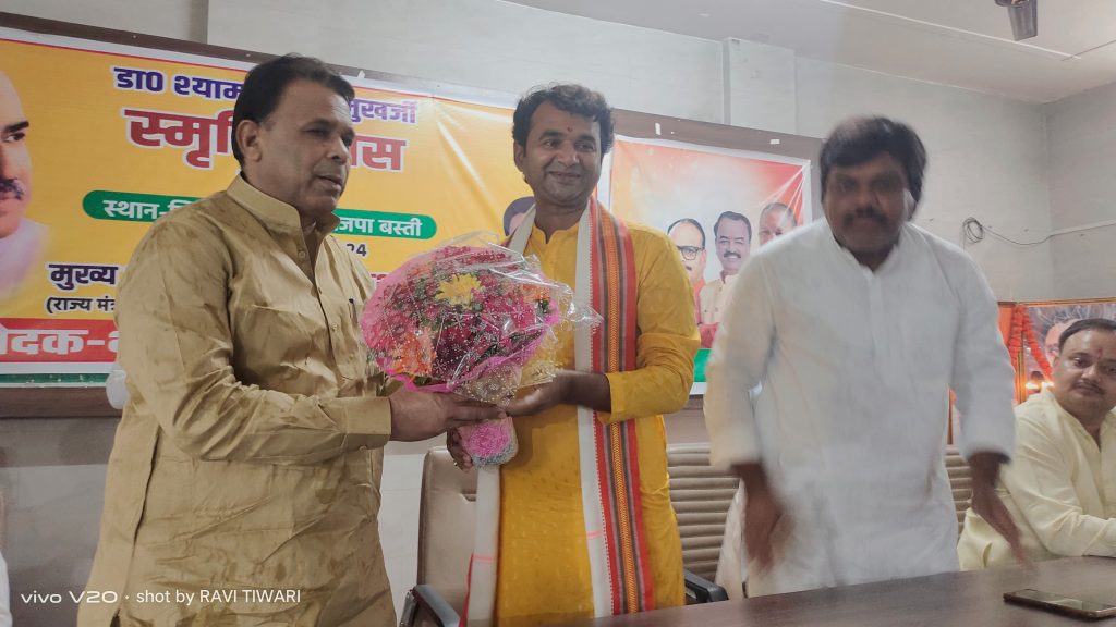 बस्ती। जनसंघ के संस्थापक डॉ. श्यामा प्रसाद मुखर्जी की जयंती के उपलक्ष्य में भारतीय जनता पार्टी पूरे देश में स्मृति दिवस पखवाड़ा मना रही है। देश में ‘दो निशान, दो प्रधान और दो विधान’ नहीं चलेंगे, का नारा देने वाले डॉ. मुखर्जी की याद में देशभर में चर्चा, विचार गोष्ठी और संगोष्ठी आदि कार्यक्रम हो रहे हैं। इस कड़ी में बस्ती बीजेपी के मुख्यालय पर विचार गोष्ठी हुई। इसमें उत्तर प्रदेश के राज्य मन्त्री एवं भाजपा पिछड़ा मोर्चा के प्रदेश अध्यक्ष नरेन्द्र कश्यप बतौर मुख्य अतिथि मौजूद रहे। अध्यक्षता जिलाध्यक्ष विवेकानन्द मिश्र ने की।