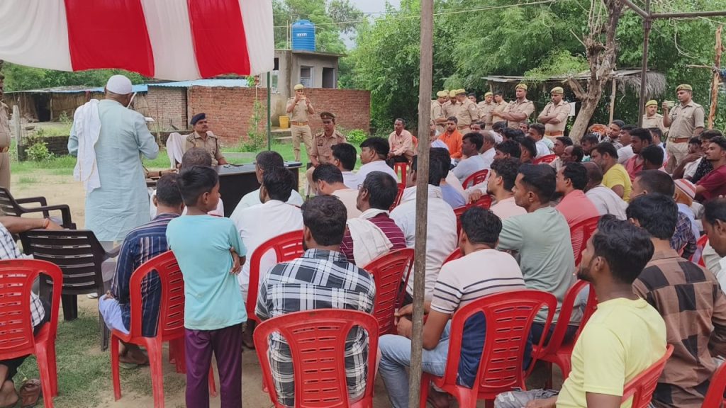 बस्ती जनपद आज दिनांक 02.07.2024 को अपर पुलिस अधीक्षक बस्ती ओमप्रकाश सिंह द्वारा चौकी सिकंदरपुर के प्रांगण में आगामी त्योहार मुहर्रम को देखते हुए पीस कमेटी की मीटिंग की गयी। इस मीटिंग में थाना क्षेत्र अन्तर्गत हैदराबाद, सिकंदरपुर, रिधौरा, परवरपारा, जोगापुर और आसपास के ताजियादारान तथा अन्य सांभ्रांत व्यक्ति सम्मिलित हुए। मीटिंग में शामिल लोगों को अपर पुलिस अधीक्षक द्वारा शासन प्रशासन के निर्देशों से भलीभांति अवगत कराया गया। ताजियों का आकार परंपरागत ढंग से रखने, परंपरागत रूट का ही इस्तेमाल करने तथा शांतिपूर्ण व सौहाद्रपूर्ण वातावरण में त्योहार मनाए जाने की अपील की गई। मीटिंग से संबंधित तथ्यों को त्योहार रजिस्टर में दर्ज कराया गया। इस अवसर पर प्रभारी निरीक्षक परसरामपुर तहसीलदार सिंह, प्रभारी चौकी सिकंदरपुर श्री मुनींद्र कुमार त्रिपाठी, प्रभारी चौकी घघौवा श्री सर्वेश चौधरी तथा अन्य अधिकारी/ कर्मचारीगण मौजूद रहे।