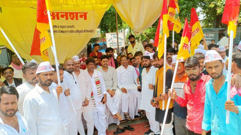 बस्ती जनपद मोहित अपहरण कांड के विरोध में सपा जिलाध्यक्ष व सदर विधायक महेन्द्र यादव के नेतृत्व में सपाइयों ने कचहरी स्थित शास्त्री चौक पर दूसरे दिन भी धरना देकर अनशन किया। सदर विधायक ने मोहित की सकुशल बरामदगी और अपहर्ताओं पर कार्रवाई के लिए डीएम-एसपी को ज्ञापन देकर धरने का अल्टीमेटम दिया था।अनशन स्थल पर अपह्रत मोहित की मां बदामा देवी व बड़ा भाई मनीष यादव की मौजूद रहा। इस दौरान एडीएम प्रतिपाल चौहान, एएसपी ओपी सिंह, एसडीएम शत्रुहन पाठक, सीओ सिटी सत्येन्द्र भूषण त्रिपाठी ने सदर विधायक से बातचीत की अब तक मोहित अपहरण कांड में पुलिस की ओर से हुई कार्रवाई की उन्हें जानकारी दी। बताया कि पुलिस टीमें लगातार दबिश दे रहीं अपहर्ता व उनके द्वारा प्रयुक्त वाहन बरामद कर लिए गए हैं। अधिकारियों ने सपाइयों से अनशन समाप्त करने का अनुरोध किया। वहीं पर आज सरदार सेना के कई पदाधिकारियों ने धरना स्थल पर पहुंचकर अपना समर्थन दिया है।
