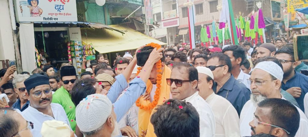 ( अशफाक ) गोरखपुर – इस्लामी साल के मोहर्रम की दसवीं आशूरा के दिन खूनीपुर चौक पर अनवार हुसैन वेलफेयर सोसायटी के सदर अशफाक हुसैन मेकरानी ने इमामबाड़ा स्टेट के सज्जादानशीन सैय्यद अदनान फर्रुख अली शाह मिया साहब के बेटे सैय्यद अयान अली शाह का इस्तकबाल खैरमकदम किया मेकरानी ने कहा की खूनीपुर चौक पर स्वागत मंच के माध्यम से स्टेट के जुलूस के साथ साथ सहर से निकले सभी जुलूस के मोतवल्ली हजरात का इस्तकबाल स्वागत करते हुए इस्लामी साल की मुबारकबाद पेश किया गया और मंच से अमनो अमान भाईचारा कायम रखते हुए जुलूस ए मुहर्रम मनाने की अपील की गई।इस मौके पर ऑल इण्डिया उर्स कमेटी के अध्यक्ष मोहम्मद रजा लड्डन खान, मेराज हुसैन, नबी हुसैन, मोहम्मद मुक्ताद्दिर,मोहम्मद आकिब, शादान हुसैन, अशहर हुसैन, आदि मौजूद रहे।