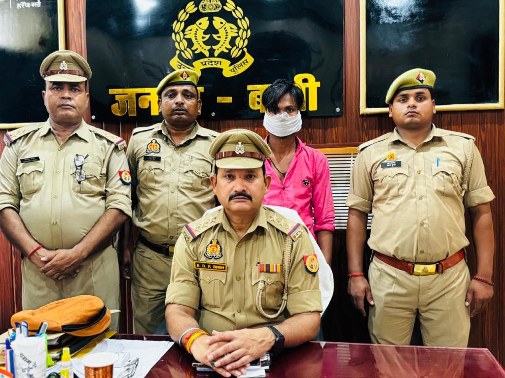 बस्ती जनपद थाना हरैया पुलिस द्वारा थाना स्थानीय पर पंजीकृत मु0अ0सं0 119/2024 धारा 363,366,376,504,506 आईपीसी 5/6 पॉक्सो एक्ट से संबंधित वांछित अभियुक्त रघुवीर पुत्र मुन्नी सकिन खटीकहिया थाना कलवारी जनपद बस्ती को आज दिनांक 22.07.2024 समय करीब सुबह 5:00 बजे बेलाडे शुक्ल थाना हरैया जनपद बस्ती से गिरफ्तार किया गया ।