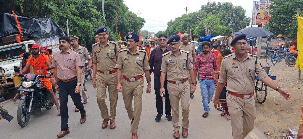 बस्ती जनपद अपर पुलिस महानिदेशक गोरखपुर जोन, गोरखपुर द्वारा मंडलायुक्त बस्ती मंडल (बस्ती), पुलिस महानिरीक्षक बस्ती रेंज( बस्ती ), जिलाधिकारी बस्ती व पुलिस अधीक्षक बस्ती के साथ कांवड़ यात्रा को सकुशल व शांतिपूर्ण सम्पन्न कराने के दृष्टिगत थाना कोतवाली क्षेत्रांतर्गत पुलिस अधीक्षक आवास गेट नंबर 2 से अमहट पुल से होते हुए रामचन्द्र शुक्ल तिराहा तक कांवड़ यात्रा मार्ग का भ्रमणशील होकर निरीक्षण किया गया तथा ड्यूटी में लगे सभी अधिकारी/ कर्मचारीगण को ड्यूटी स्थल पर सतर्क दृष्टि रखते हुए ड्यूटी करने हेतु निर्देशित किया गया।