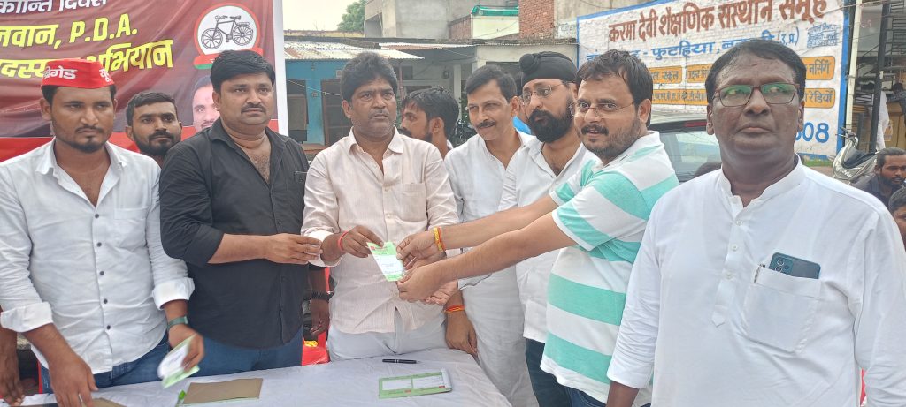 बस्ती जनपद शनिवार को प्रदेश नेतृत्व के आवाहन पर समाजवादी पार्टी छात्र सभा जिलाध्यक्ष अजय यादव, युवजन सभा जिलाध्यक्ष विपिन त्रिपाठी, लोहिया वाहिनी जिलाध्यक्ष रहमान सिद्दीकी, मुलायम सिंह यूथ विग्रेड के महासचिव मो. हारिश के संयोजन में कम्पनी बाग के पास स्थित शिव मंदिर के निकट सदस्यता अभियान चलाया गया। पहले दिन 150 सदस्य बनाये गये।