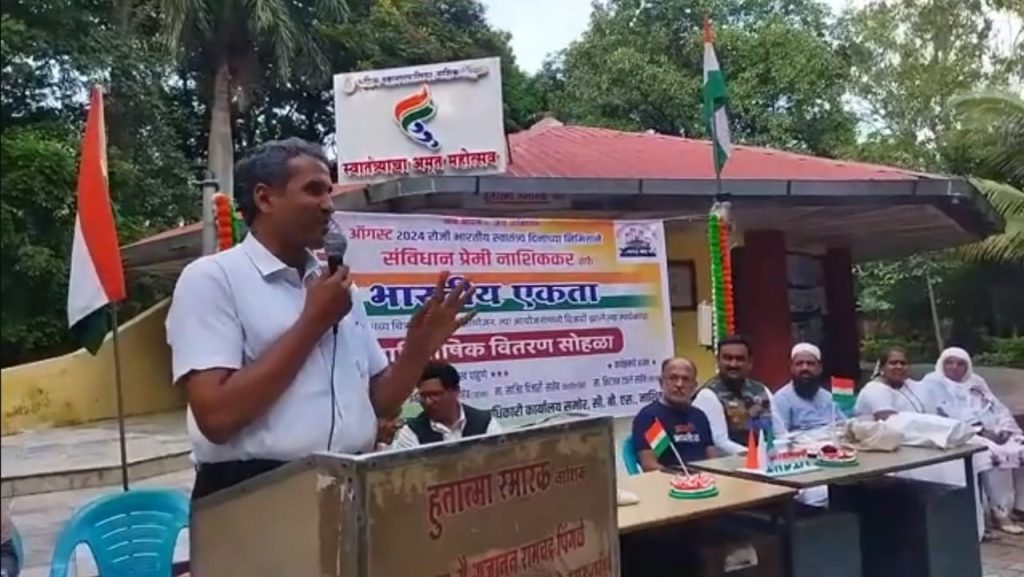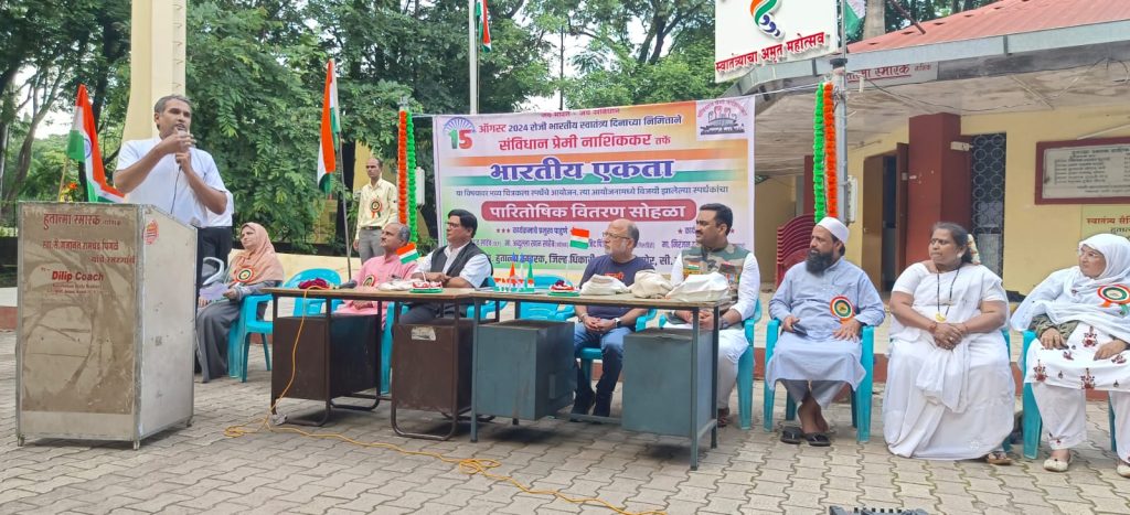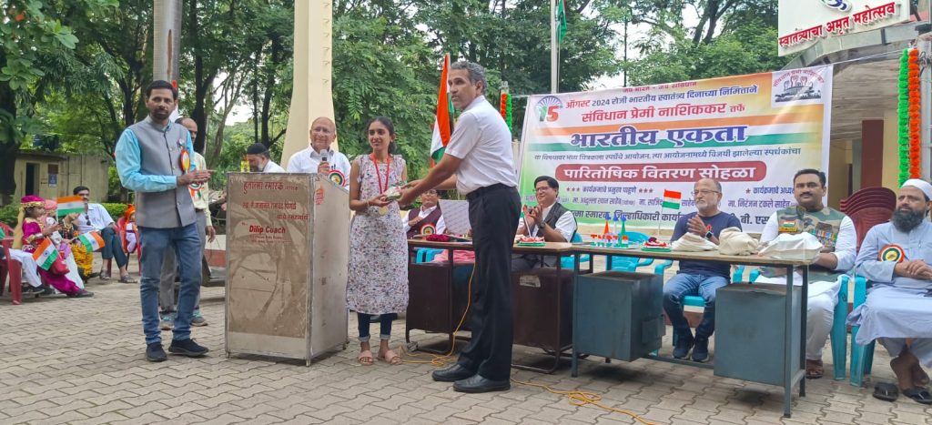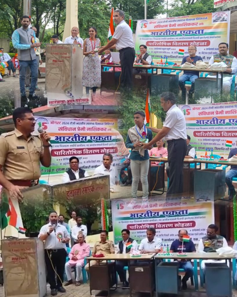 नाशिक – देश के 78 वे स्वतंत्रता दिवस के अवसर पर भारतीय एकता {सामाजिक, धार्मिक, एकता } के उद्देश्य पर महाविद्यालय के विद्यार्थियो के बीच चित्रकला स्पर्धा का आयोजन हुआ । स्पर्धा का आयोजन सामाजिक संगठन संविधान प्रेमी नाशिककर, एम्स चैरिटेबल ट्रस्ट द्वारा किया गया । कार्यक्रम का नेतृत्व रिलेक्सो डोमस्वेयर कम्पनी निदेशक अब्दुल्लाह खान द्वारा किया गया ।