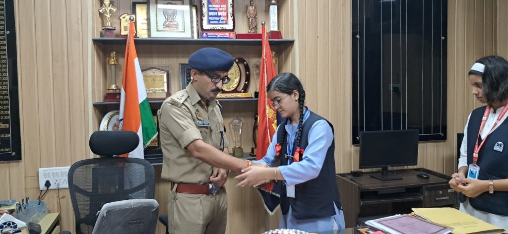 बस्ती जनपद 17.08.2024 को रक्षाबन्धन के पावन पर्व के उपलक्ष्य में उर्मिला एजुकेशन एकेडमी, बस्ती की बालिकाओं द्वारा पुलिस अधीक्षक बस्ती गोपाल कृष्ण चौधरी को कलाई पर राखी बाँधा गया तथा भेंट के रूप में स्वचित्रित उपहार दिया गया। जिसके उपरान्त पुलिस अधीक्षक बस्ती महोदय द्वारा शुभाशीष व नारी सुरक्षा सम्मान हेतु जागरूक रहने की बात बताकर मिष्ठान्न खिलाया गया। इस अवसर पर विद्यालय के शिक्षक/शिक्षिका भी मौजूद रहे।