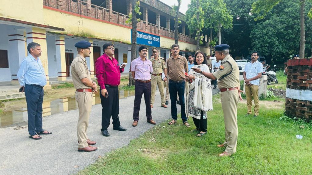 बस्ती जनपद 22 अगस्त 2024 मण्डलायुक्त अखिलेश सिंह, पुलिस महानिरीक्षक आरके भारद्वाज, द्वारा जिलाधिकारी रवीश गुप्ता व पुलिस अधीक्षक गोपाल कृष्ण चौधरी के साथ उ0प्र0 पुलिस आरक्षी भर्ती परीक्षा-2024 को निष्पक्ष व पारदर्शी तरीके से सकुशल सम्पन्न कराने के दृष्टिगत विभिन्न परीक्षा केन्द्रों का भ्रमण कर निरीक्षण किया गया तथा संबंधित को शासन द्वारा जारी निर्देशों को सख्ती से पालन हेतु आवश्यक दिशा निर्देश दिया गया। निरीक्षण के दौरान संबंधित अधिकारी कर्मचारीगण मौजूद रहे। जिलाधिकारी व पुलिस अधीक्षक द्वारा पुलिस लाईन सभागार में बने सीसीटीवी कंट्रोल का निरीक्षण किया गया तथा ड्यूटी में लगे सभी को आवश्यक निर्देश दिया गया।