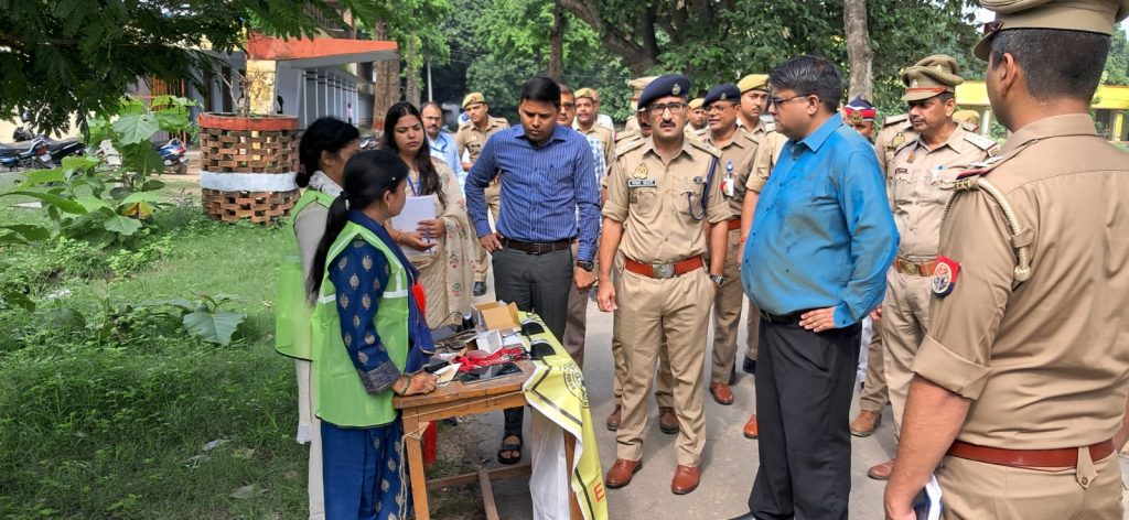 बस्ती जनपद जिलाधिकारी बस्ती व पुलिस अधीक्षक बस्ती द्वारा उ0प्र0 पुलिस आरक्षी भर्ती परीक्षा-2023 को निष्पक्ष व पारदर्शी तरीके से सकुशल सम्पन्न कराने के दृष्टिगत जनपद बस्ती के समस्त परीक्षा केन्द्रों का भ्रमण कर निरीक्षण किया गया तथा संबंधित को शासन द्वारा जारी निर्देशों को सख्ती से पालन हेतु आवश्यक दिशा निर्देश दिया गया। निरीक्षण के दौरान संबंधित अधिकारी कर्मचारीगण मौजूद रहे।