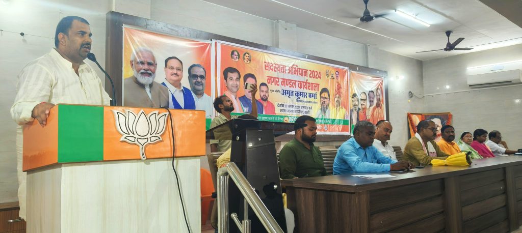 बस्ती जनपद भारतीय जनता पार्टी के राष्ट्रव्यापी सदस्यता अभियान के निमित संगठन पर्व सदस्यता अभियान 2024 अंर्तगत भाजपा बस्ती नगर मंडल की कार्यशाला जिला कार्यालय सभागार में संपन्न हुई। नगर अध्यक्ष अलोक पाण्डेय की अध्यक्षता में आहुत कार्यशाला को मुख्य अतिथि सदस्यता अभियान के जिला सह प्रमुख अमृत कुमार वर्मा ने पदाधिकारियों को संबोधित किया।