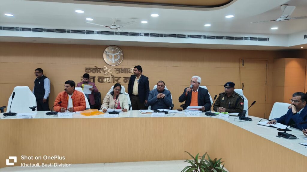 मा0 मंत्री जी कहा कि हम सभी का उद्देश्य जनपद संत कबीर नगर का सर्वांर्गीण विकास, भ्रष्टाचार मुक्त कार्य के साथ-साथ सरकार की योजनाओं का प्रचार-प्रसार कराना एवं नियमानुसार पात्रों को योजनाओं का लाभ दिलाना है। किसी भी स्तर पर उन्हें भ्रमित न करते हुए पूरी निष्पक्षता एवं पारदर्शिता के साथ पात्र व्यक्तियों को लाभान्वित किया जाए। उन्होंने कहा कि जनपद के ग्रामीण क्षेत्रों से आने वाले माताओं, बहनों सहित सभी फरियादियों की शिकायतों का त्वरित एवं गुणवत्तापूर्ण निस्तारण सुनिश्चित कराते हुए उसका फीड बैक भी लिया जाए। उन्होंने प्रशासन से महिलाओं, बेटियों का सम्मान, सुरक्षा एवं स्वालम्बन तथा गरीबों एवं वंचितों को लाभ एवं न्याय दिलाये जाने की अपेक्षा व्यक्त किया। जिलाधिकारी महेन्द्र सिंह तंवर ने जनपद के विकास हित में कराये जा रहे कार्याे एवं आगामी योजनाओं के बारे में मा0 मंत्री जी को अवगत कराया।
