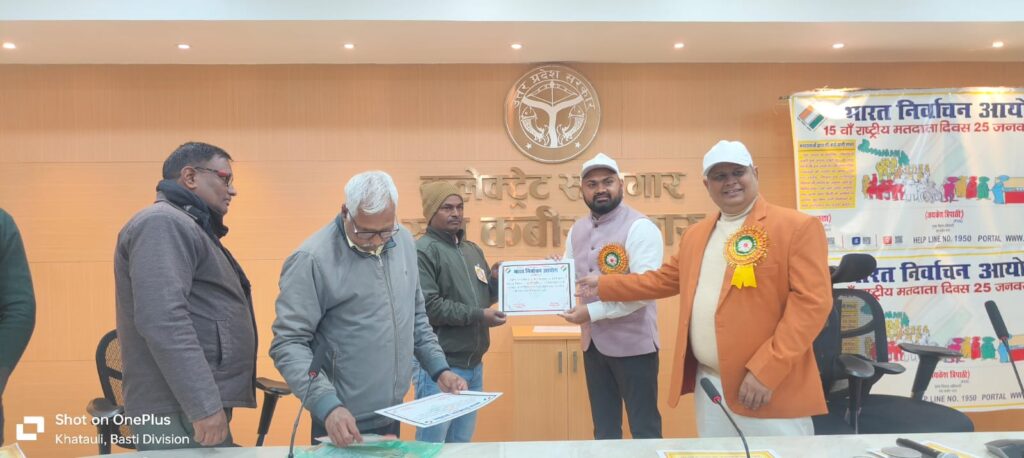संत कबीर नगर 25 जनवरी 2025 भारत निर्वाचन आयोग के निर्देश पर जिलाधिकारी महेन्द्र सिंह तंवर की अध्यक्षता में 15वें राष्ट्रीय मतदाता दिवस समारोह का आयोजन कलेक्ट्रेट सभागार में किया गया। इस अवसर पर अपर जिलाधिकारी जय प्रकाश उपस्थित रहे।